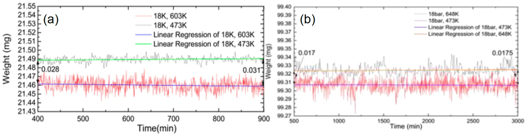 Hastelloy X exhibited a much lower hydrogen absorption rate, with only a 0.07% weight reduction, confirming its superior performance in resisting hydrogen diffusion.