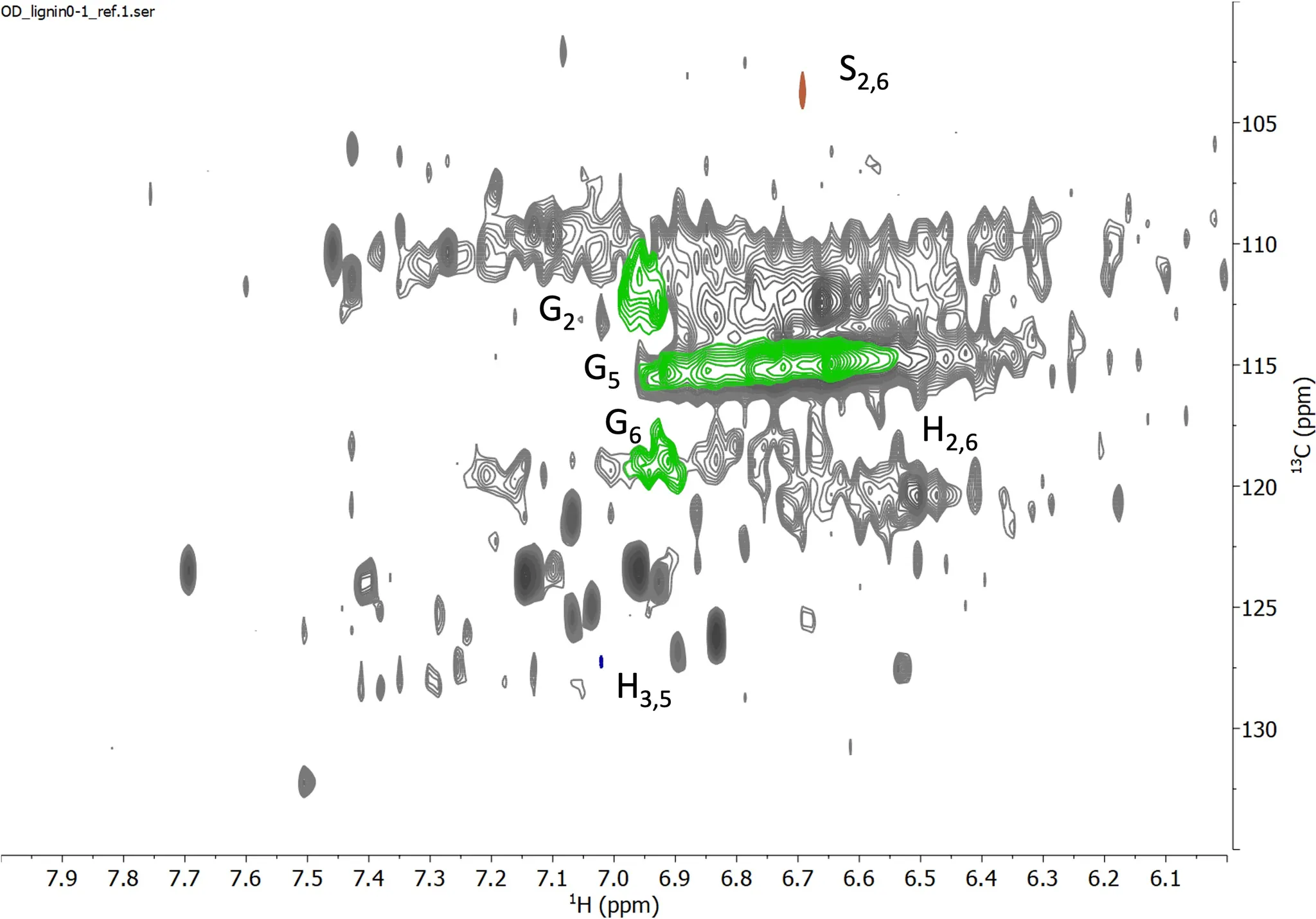 Fig. HSQC Spectrum of Aromatic Region for Oven Dried lignin reference sample 0-1