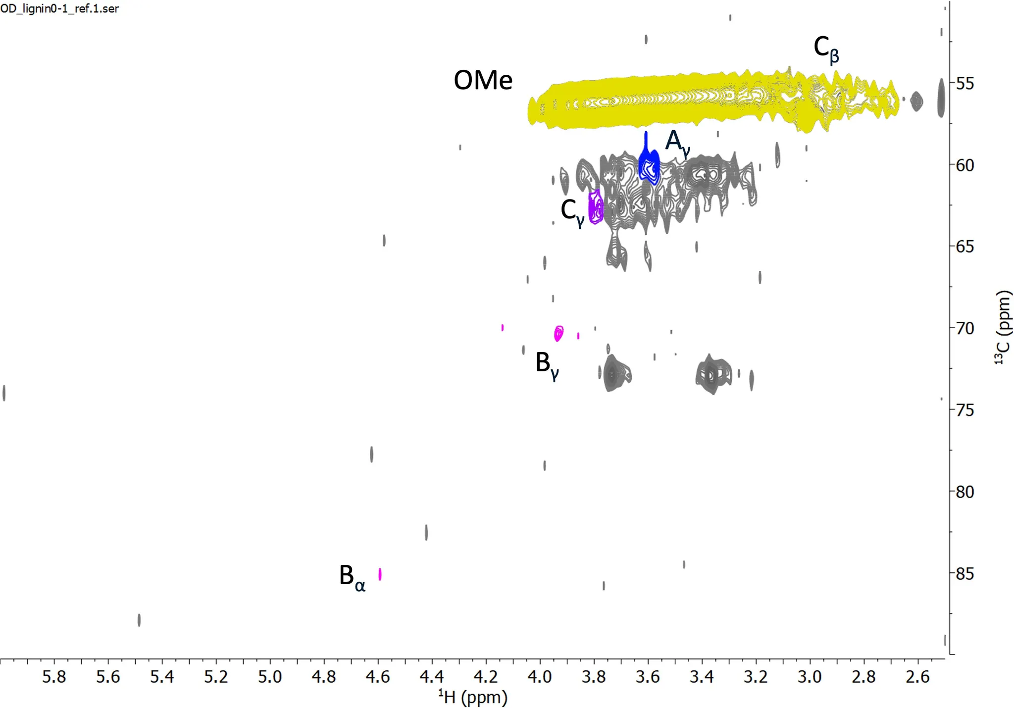 Fig. HSQC Spectrum of Aliphatic Region for Oven Dried lignin reference sample 0-1