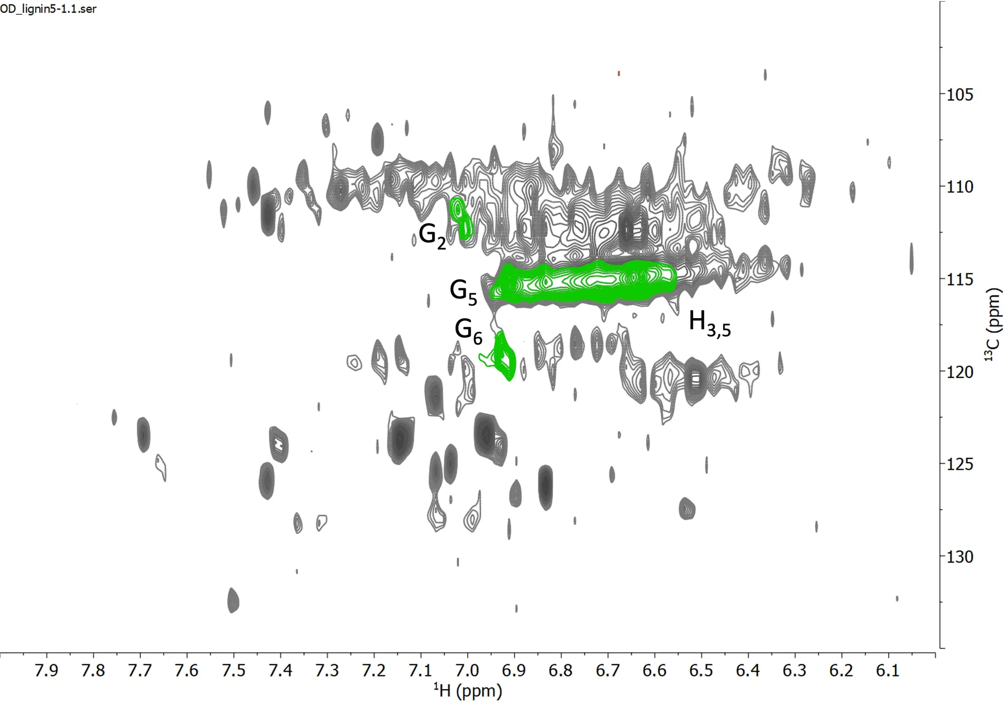 Fig. HSQC Spectrum of Aromatic Region for oven dried lignin reference sample 5-1