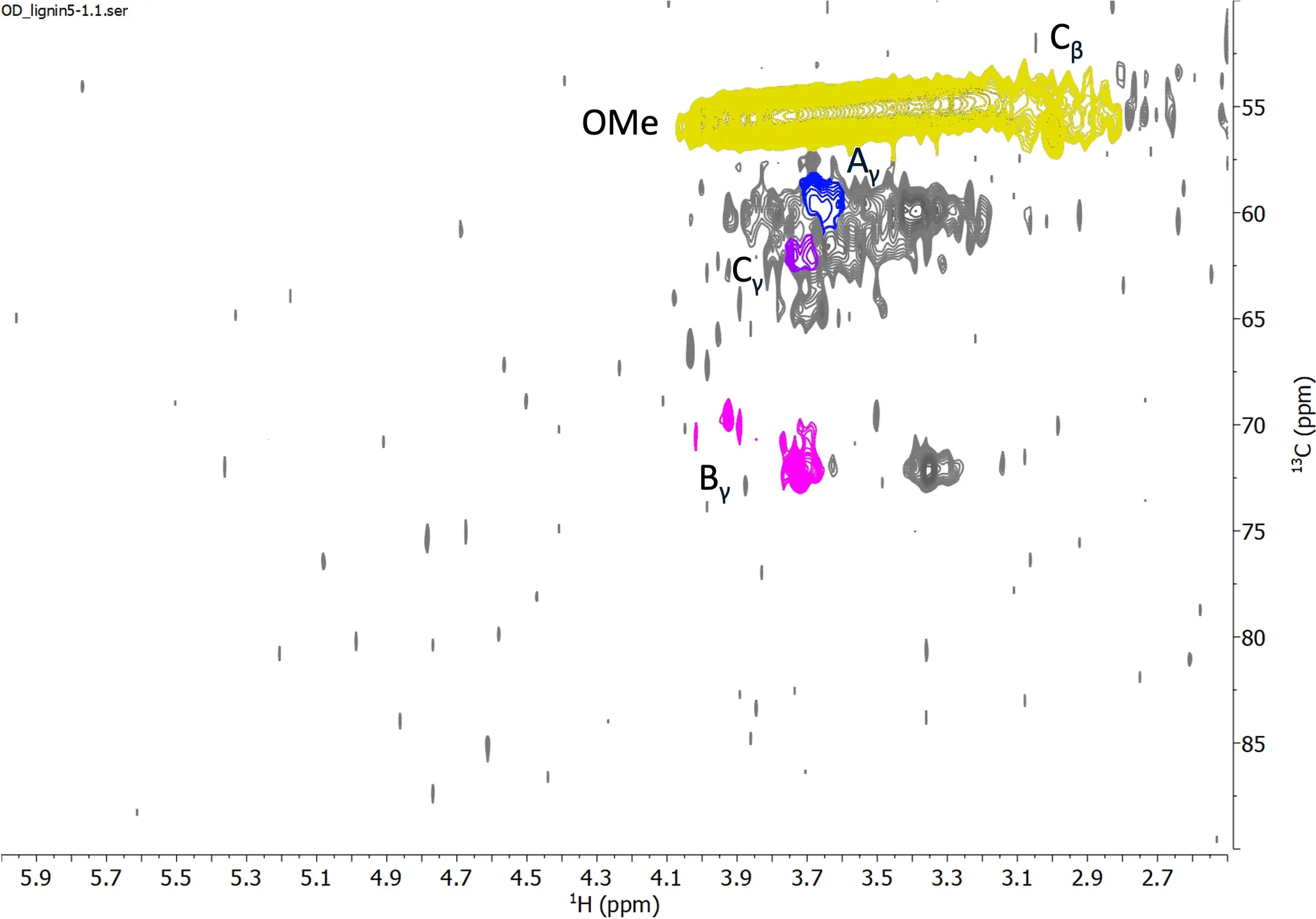 Fig. HSQC Spectrum of Aliphatic Region for oven dried lignin reference sample 5-1